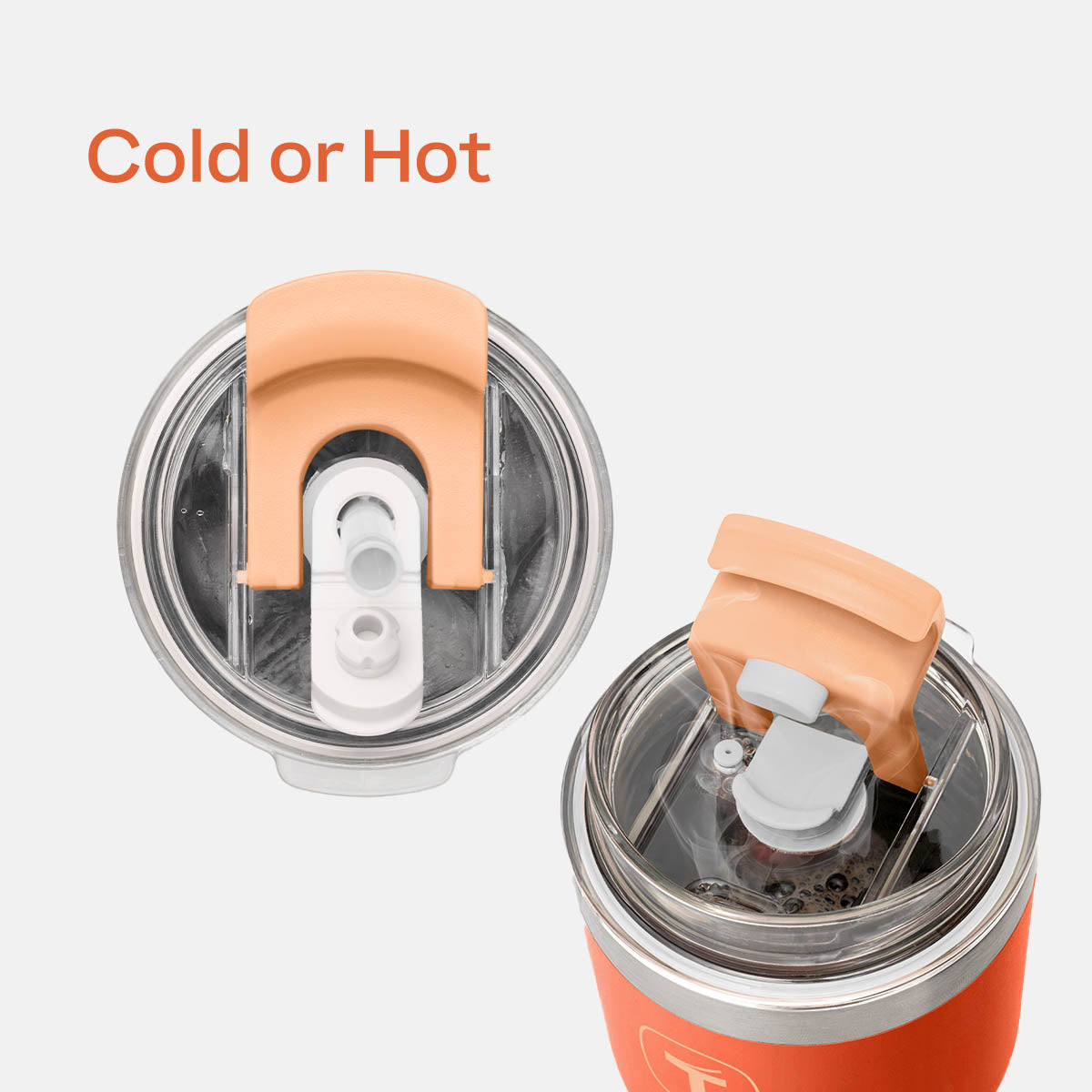 - Pour boire du bec ou à la paille :Pour boissons froides, insérez la paille dans le couvercle 2-en-1. Pour boissons chaudes, ouvrez le capuchon pour boire du bec.