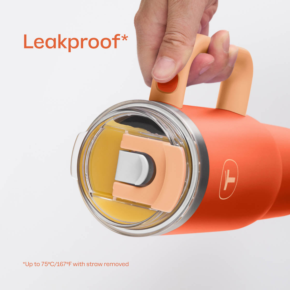 Avoid use with drinks over 167°F / 75°C when the lid is closed to prevent leaks and burn injuries. Hotter liquids can be used without the lid.